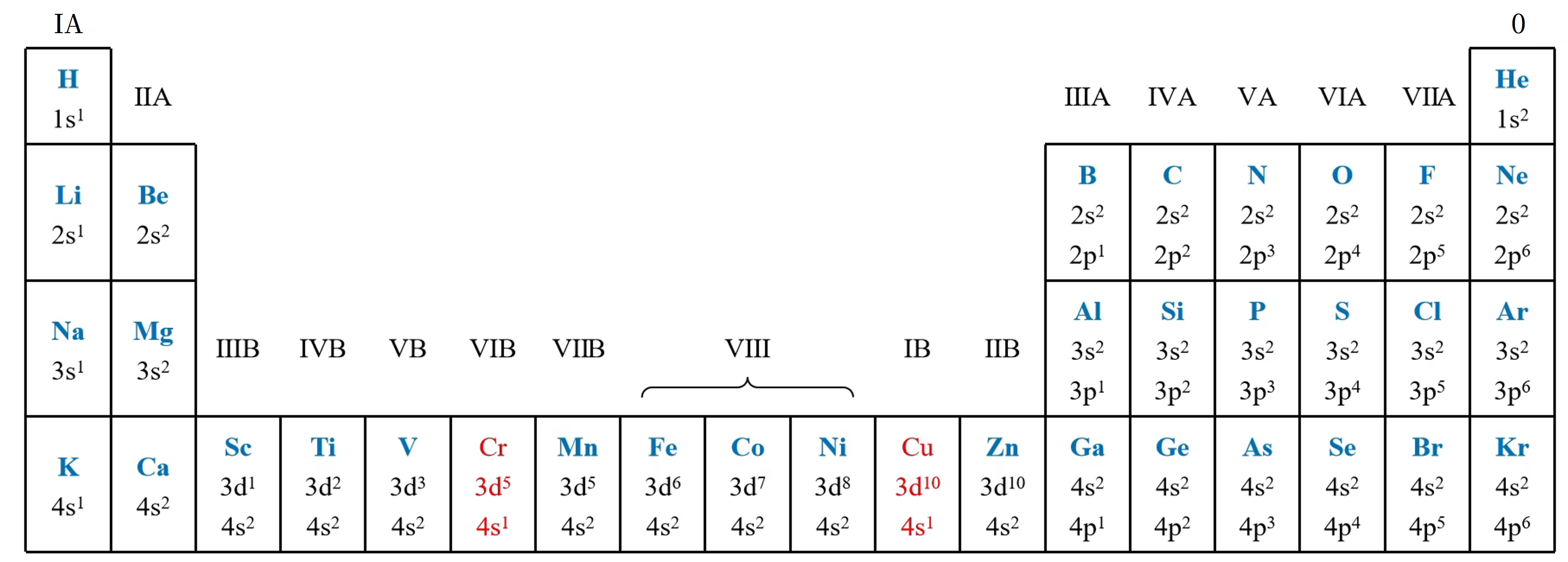 第四周期: